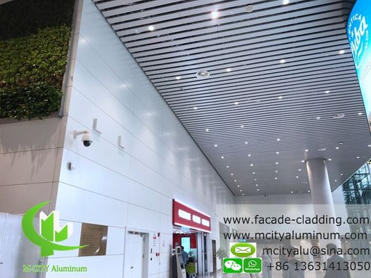 Paneles de techo metálicos de aluminio de alta calidad con acabado blanco con recubrimiento en polvo, diseñados para aplicaciones interiores y exteriores con propiedades ignífugas.