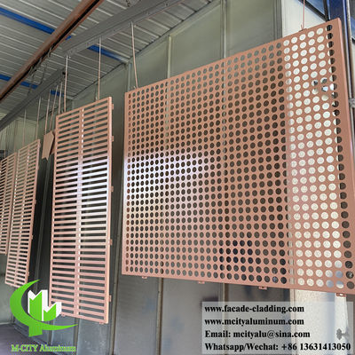 Sistema de fachada de chapa de metal dorada perforada de primera calidad hecha de aleación de aluminio de alta calidad con un grosor de 3 mm y un revestimiento de pintura PVDF duradero.