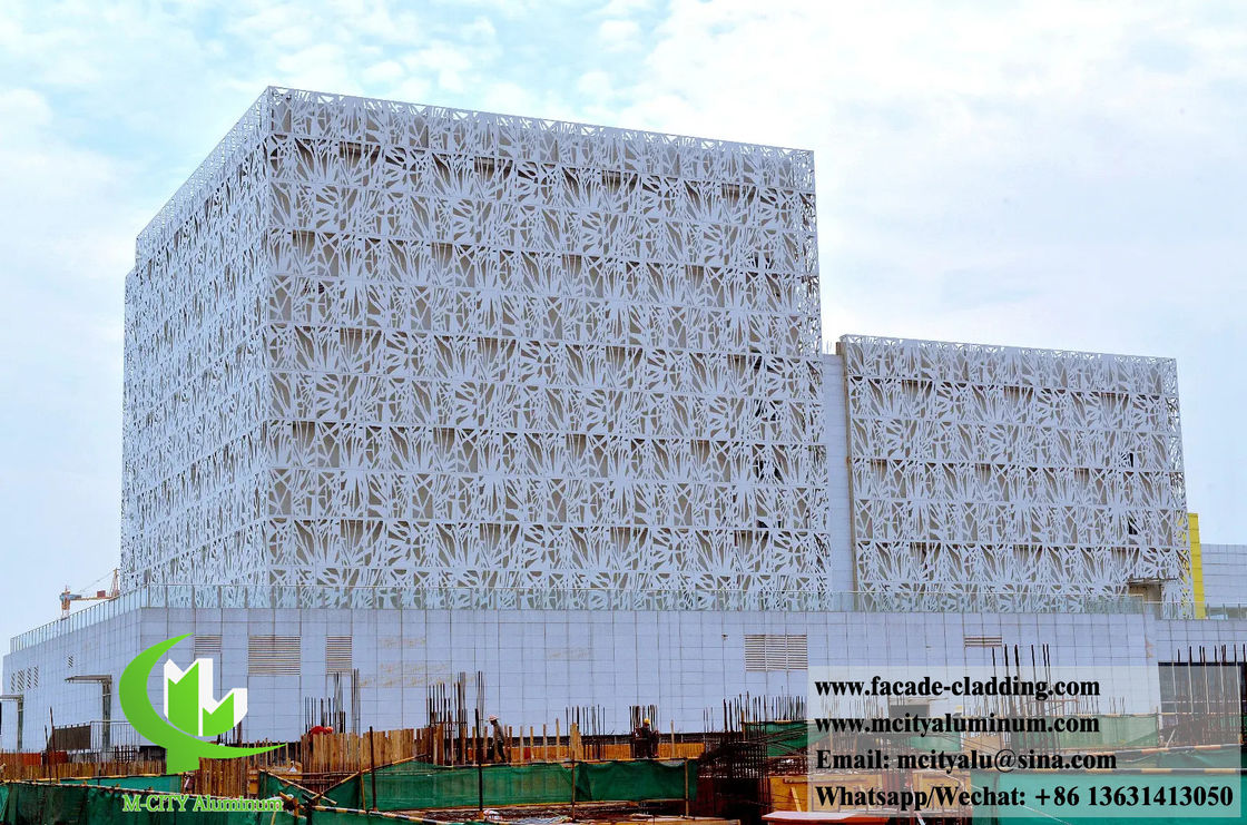 Sistemas profesionales de fachada metálica perforada con patrones personalizados y recubrimiento en polvo blanco duradero para aplicaciones arquitectónicas.