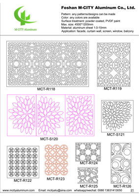 Para satisfacer los requisitos individuales del cliente, puede seleccionar patrones de nuestras representaciones o proporcionar sus patrones favoritos para su personalización.Nuestro objetivo es crear los mejores productos personalizados para cada cliente.Los tamaños de los paneles huecos de aluminio se pueden ajustar con las consideraciones adecuadas de los elementos de diseño, no solo con una simple escala.